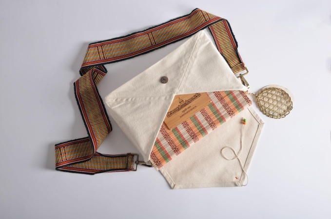 निमंत्रण बॉक्स में बाँस की बुनी हुई चटाई का उपयोग किया गया है, जो करघे पर तैयार की गई है। इसके ताने (वार्प) में रंगे हुए सूती धागे और बाने (वेफ़्ट) में बाँस की बारीक पट्टियाँ इस्तेमाल की गई हैं। यह तकनीक त्रिपुरा राज्य में प्रचलित है। बाहरी कवर पर हाथ से बने कागज के टैग पर आपका पता लिखा है जो बाँस से बनी एक कलाकृति के साथ लगाया गया है। यह कलाकृति बाँस को विशेष तरीके से धुएँ में तपाकर बनाई गई है। इस प्रक्रिया से इस कलाकृति का रंग गहरा भूरा हो जाता है।